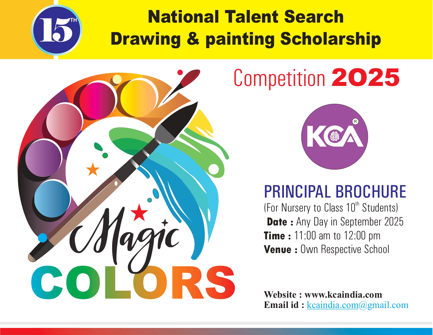 To ensure that your child receives information about the National Talent Search Drawing and Painting Scholarship Competition-2025, KCA request you to provide the correspondence address of your child's school. Once your child's school is registered with KCA, they will receive a brochure detailing all the information about the competition. This brochure will contain important details such as competition guidelines, deadlines, and registration procedures.